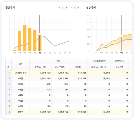 세금계산서, 사업용 신용카드 현금영수증, 매입 분석, 인건비 현황 분석